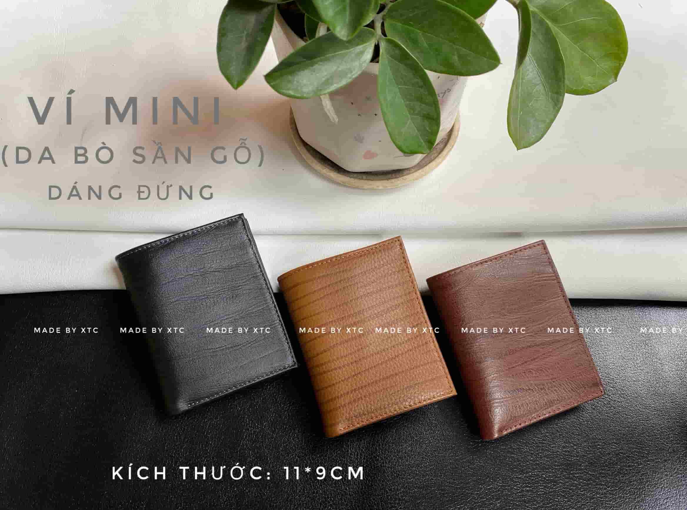 ví da bò sần gỗ mini